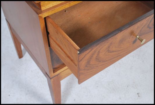 A 1950's Uniflex teak wood retro dressing table in the manner of Gunther Hoffstead. The low wide dressing table having a long dressing mirror with pedestal drawers beneath 125x152x46cm