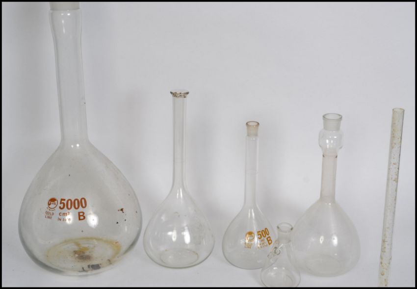 A group of 20th century scientific chemical / lab equipment to include various Pyrex boiling tubes and conical flask etc all of varying sizes along with other equipment