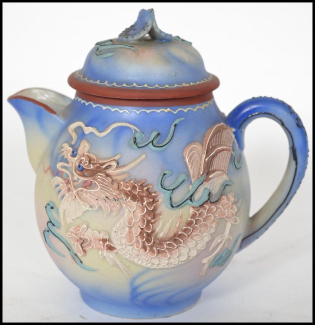 An Oriental ceramic 12 person eggshell tea service having a dragon decoration.