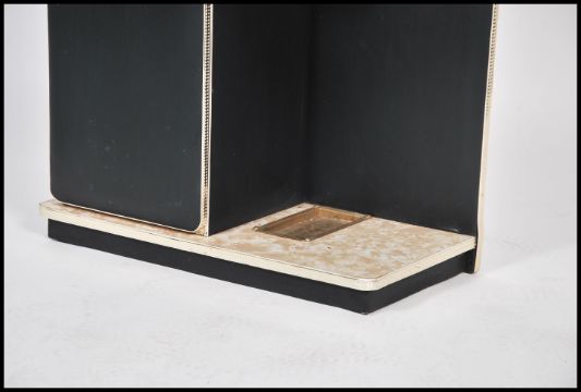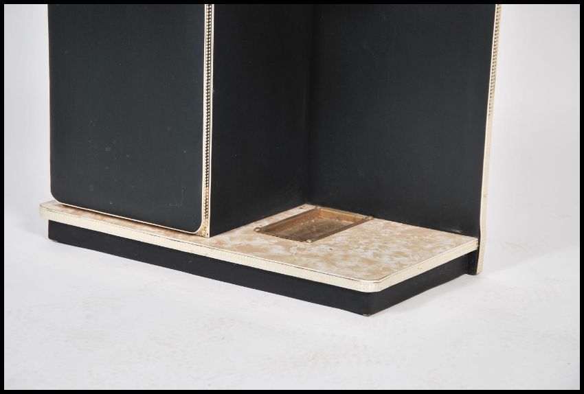 A good 1960's hall stand upholstered in two tone vinyl with padded effect being stitched and buttoned. The stand with coat hooks, mirror and stand to the base. Measures 182cm x 59cm x 30cm.
