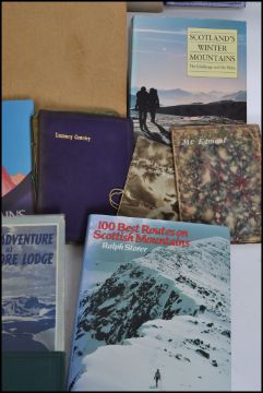 A collection of exploration / mountaineering related books, to include; Up The Amazon Over the Andes (1932), The Wilds Of Maoriland (Bell, 1914), Characteristics Of Existing Glaciers (1911), A Norwegian Traveller In Tibet (1973), Die Hohen Tauren (1935), New Zealand Scenery (First Edition) and others. Approx 15. Measures: 31cm wide.