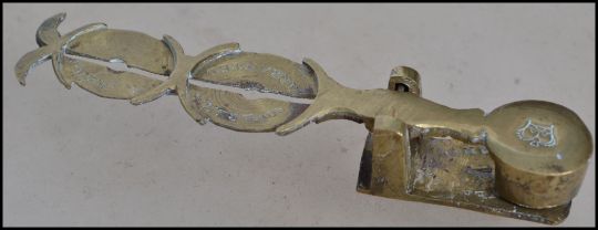 A set of Victorian 19th century brass sovereign scales having impressed notation. Measures: 10cm long.