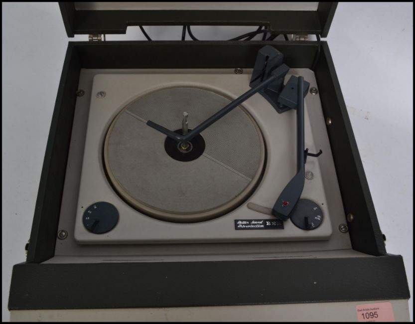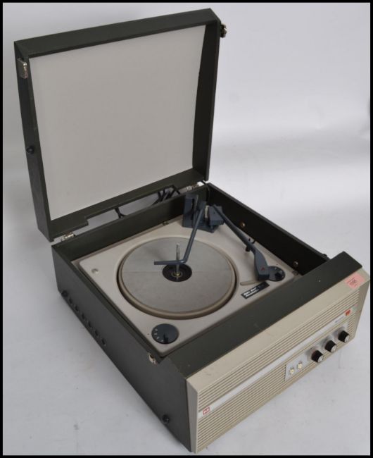 A 1960's retro two tone Murphy Type A852G record player having an inset BSR record deck. The portable record player recently being fully serviced and PAT tested.