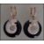 A pair of ladies contemporary silver and onyx panther earrings having emerald eyes. The onyx of roundel form.