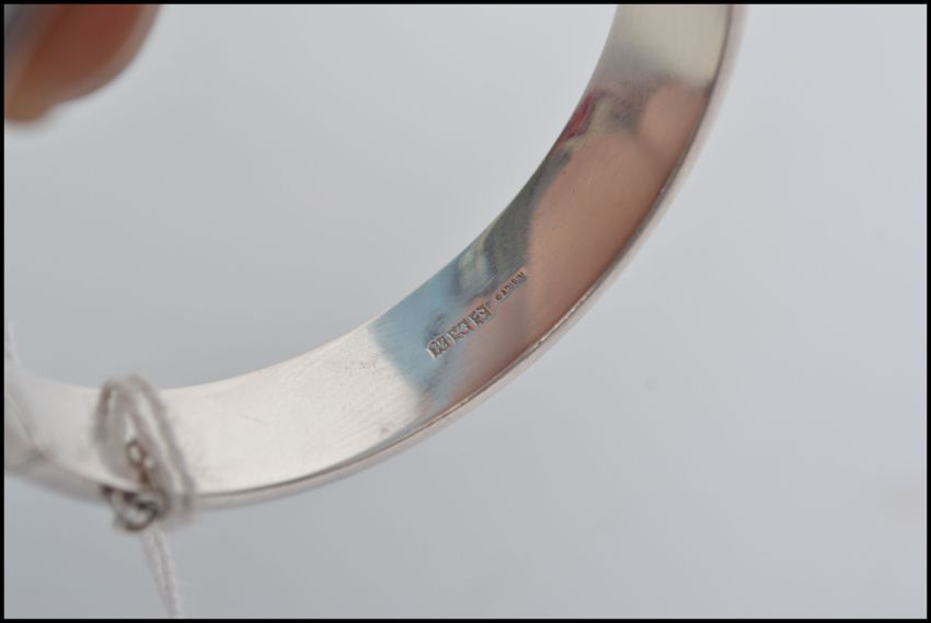A silver hallmarked bangle with engraved foliate design, Birmingham assay mark dating to 1986