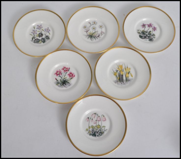 A Royal Worcester coffee can service having a decorative chintz pattern comprising cups, saucers etc being stamped to the base. Measures: 12cm wide.