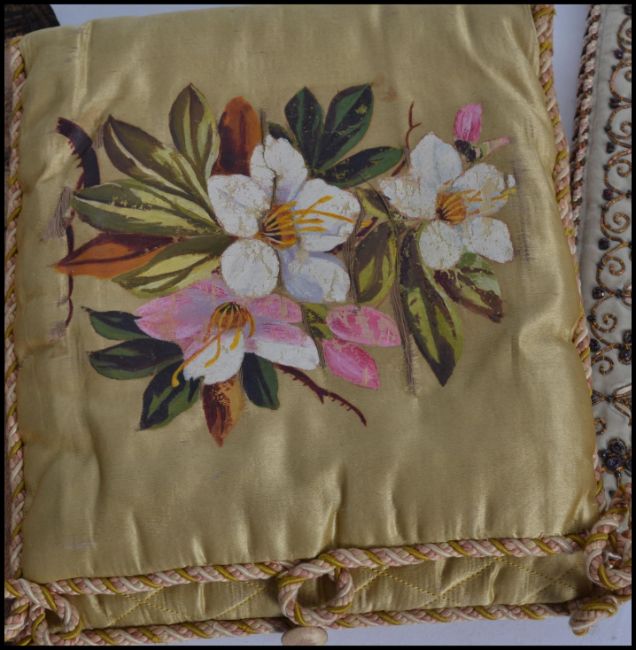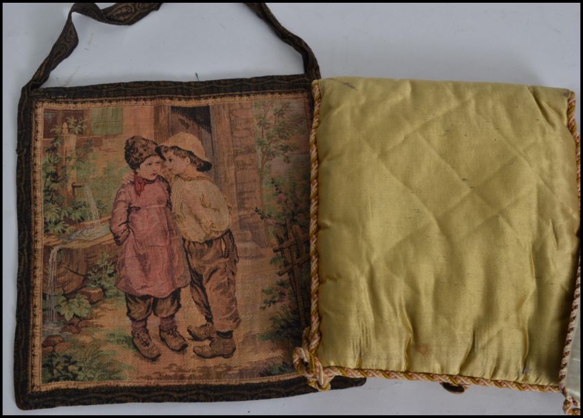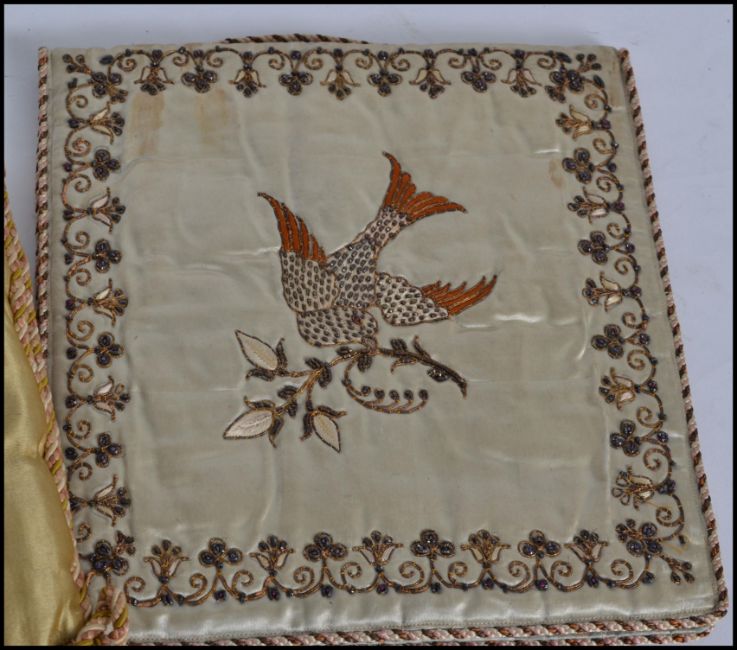 A collection of 3 believed 19th century / early 20th century ladies embroidered letter cases, one of berlin needlepoint with dove and olive branch in yellow metal thread over silk. The other silk with handpainted floral spral and a tapestry example.Measures:  50cm long.