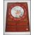 A 20th century Chinese ceramic circular plaque decorated in enamels with garden figural scene and with character writing with seal mark framed within a decorative lacquered frame.
