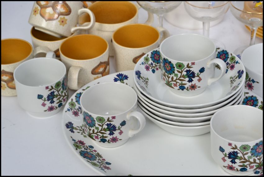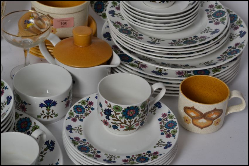 A collection of retro Worcester Palisey coffee service together with a part dinner service by Midwinter in the Marquis Of Queensbury pattern.