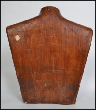 A vintage 20th century upper torso male mannequin of wooden construction having bold notation to front 'Fred' in black lettering. Measures: 44cm wide.