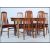 A 1960's retro teak D-end extending dining table, with six matching railback back dining chairs with padded seat pads.