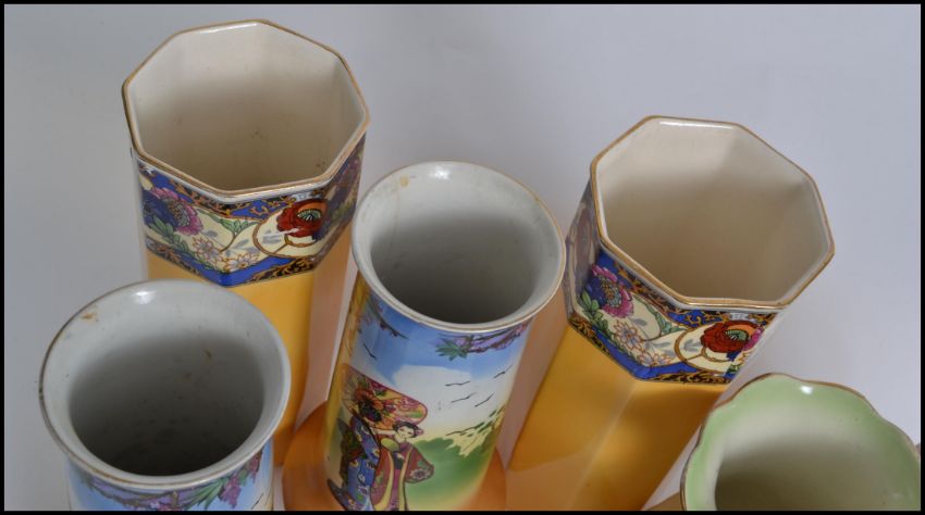 A collection of ceramics to include Haddon octagonal vases, 2 Staffordshire Chinese tapering vases  and a set of 3 graduating jugs.Measures:  28cm high