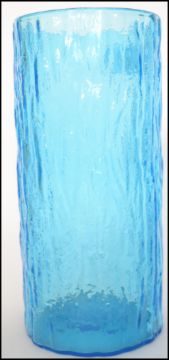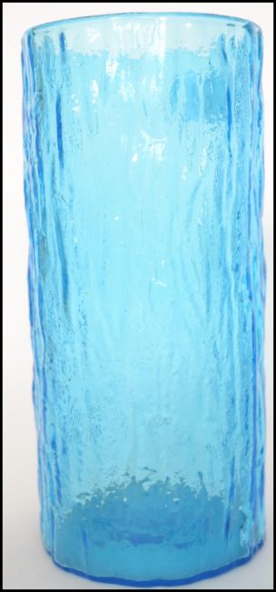 A pair of vintage retro blue art glass bark effect vases in the manner of Geoffrey Baxter for Whitefriars.  Measures 20cms high.