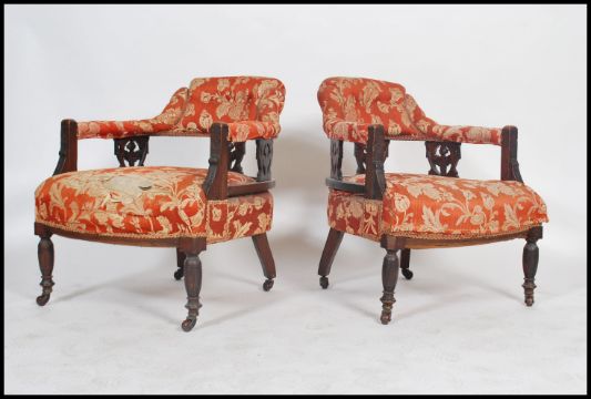 A late Victorian rosewood saloon suite comprising of scroll end chaise longue, gents and ladies saloon chairs, four dining chairs and a pair of nursing chairs. All upholstered in matching fabric. 74cms x 190cms  x 65cms