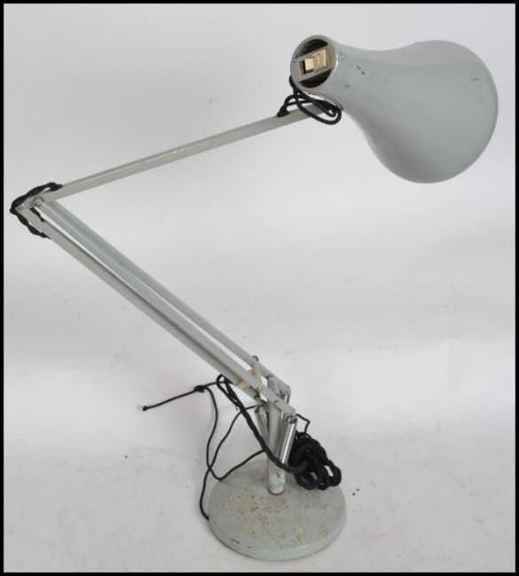 A retro 1970's grey Herbert Terry anglepoise Industrial desk lamp having pendant shade and terraced base. Measures: 92cm high.