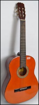 A 20th century six string acoustic classical guitar having a central applied makers label for Lauren Model 100. Measures:  98cm high.