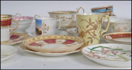 A collection of 19th century ceramics to include Booths T Goode & CO Ltd, Crown Staffordshire, Cirencester Church, college souvenir cup along with many others to include Rockingham type and others.Measures:  16cm wide.