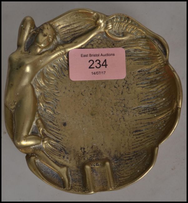 A collection of vintage items to include a brass Art Nouveau style ashtray, a Coty compact and a gilt pencil holder. Measures: 11cm wide.