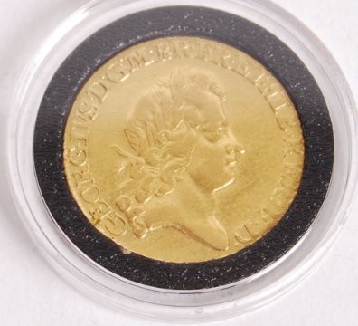An 18th century King George I 1726 full gold guinea / sovereign. 22ct gold, with portrait of the king to the front, and four crowned shields to the rear. With certificate and presentation box. 8.4g (approx)