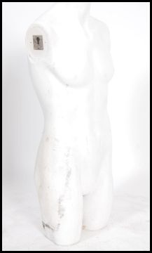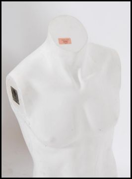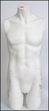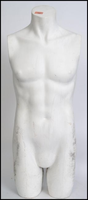 A vintage 20th century shop advertising / point of sale display male torso mannequin in white. Measures:  100cm high.