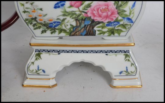 A collection of teapots to include examples such as  Franklin Mint Ltd edition teapot with creamer and stand, Tony Woods etc.Measures:  21cms wide.