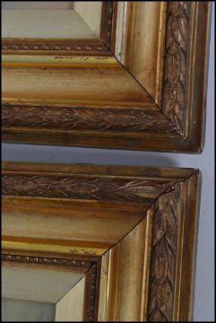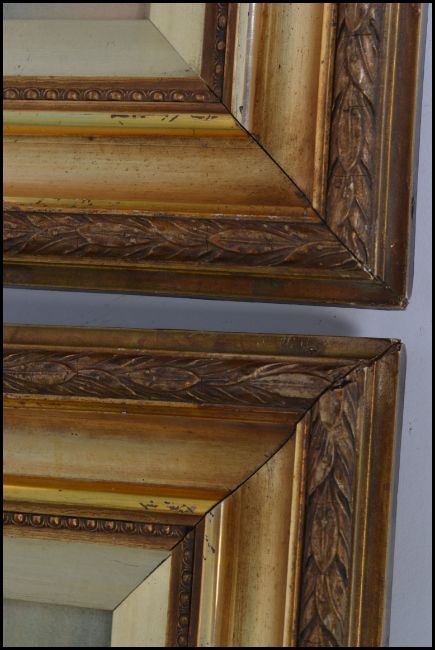 A pair of early 20th century colour paintings of Thames barges / boats with moon and clouds set in good ornate gilt frames.
