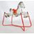 A vintage mid century tin plate child's Prairie King rocking horse by Mobo with red  seat, suspended by four coiled springs and tubular steel red painted framework.