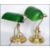 A near pair of vintage style 20th century bankers desk lamps having green glass shades raised on brass bases.