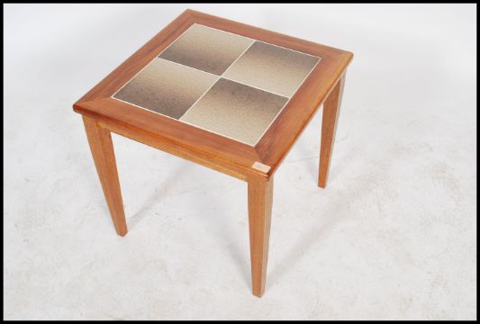 A vintage retro 20th century 1960`s G plan style teak and tiled coffee / occasional table raised on square legs.
