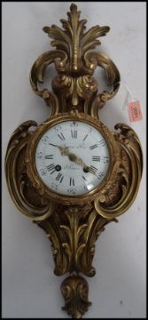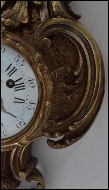 A good19th Century French brass ormulu Cartel Clock by Raing & Frer Paris. The case of flowering scrolled acanthus with an enamel dial being inscribed and with black roman and arabic numerals.