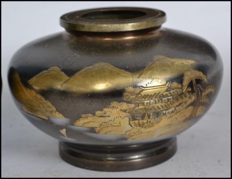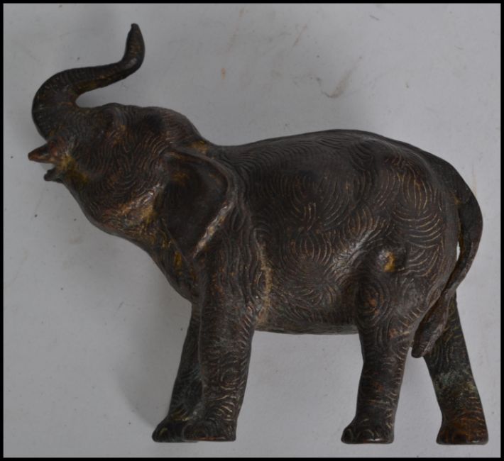 A dealers lot to include a Japanese chinoserie tray together with a bone and peacock feather ladies fan, gilt metal musical jewellery box, bronzed metal squat vases, kukri knife, elephant figurine etc
