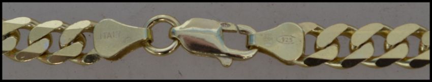 An Italian hallmarked 925 silver gilt curb chain necklace with lobster claw clasp. Hallmarked London. Measures approx 20inches. Weight 33g.