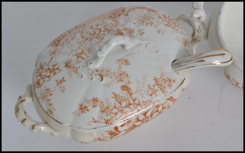 A good collection of 19th century blue and white ceramics from trio's to tureens, willow pattern to flow blue.Measures: 40cm wide.
