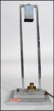 An Art Deco chrome table / desk lamp standing on a square base supporting a rectangular frame.