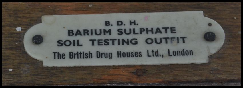 A vintage 20th century wooden cased B. D. H Barium Sulphate Soil Testing Outfit kit from The British Drug Houses Ltd London. All contents and tubes to inner. Leather carry strap to top. Measures: 27cm wide.