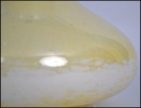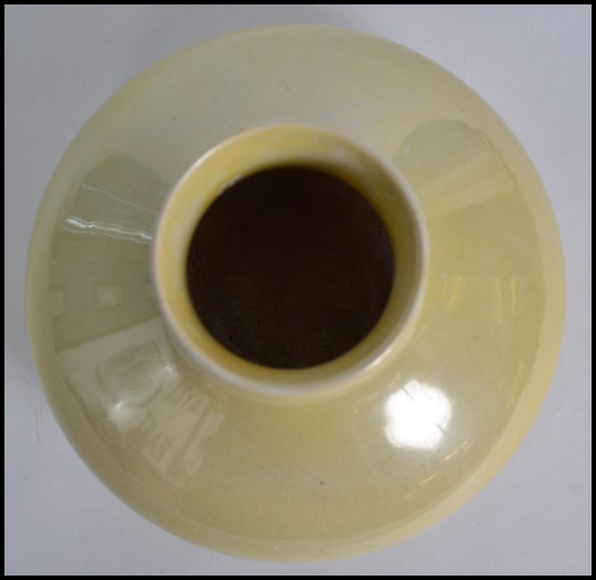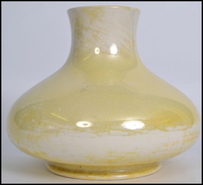 An early 20th century Moorcroft bulbous baluster vase of squat form having a yellow lustre finish. Stamped to base Moorcroft Burslem M32. Measures: 20cms Wide.