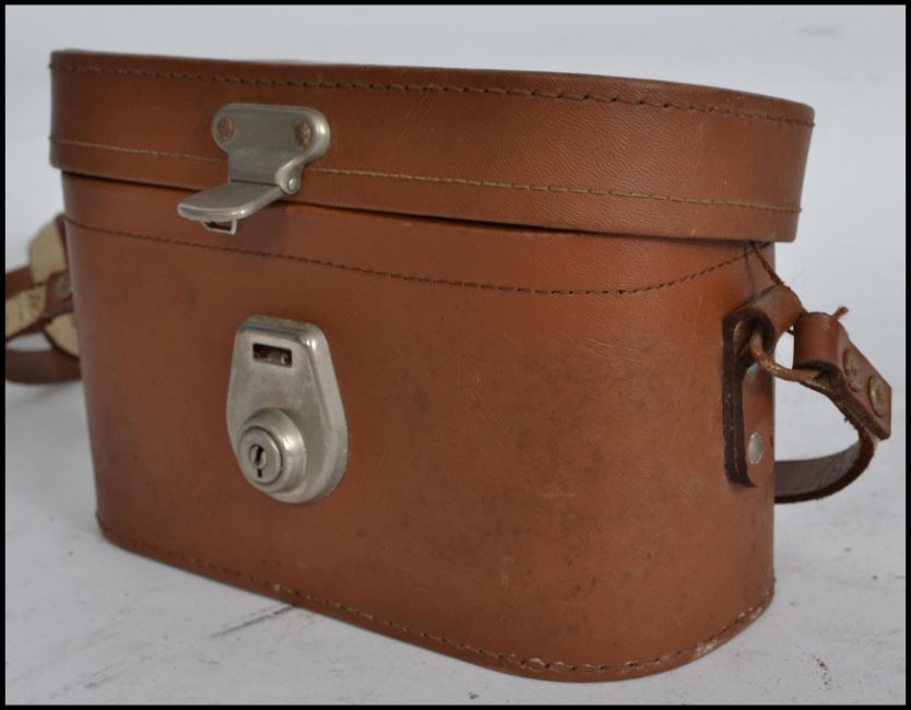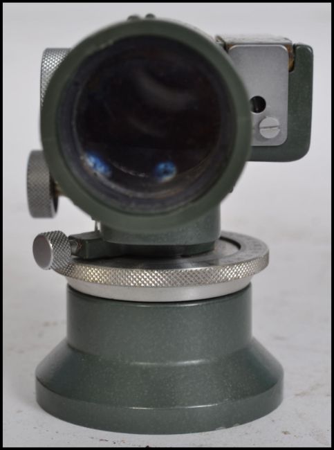 A 20th century industrial surveyors theodolite measuring tool / equipment complete in the original case. Measures: 21cm wide.