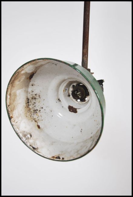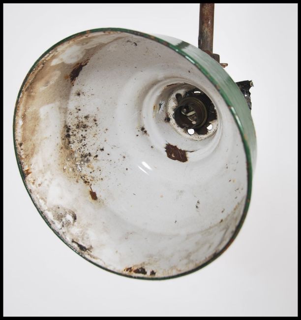 A vintage mid  20th century Industrial Maxlume enamel painted factory yard light in green and white colourway