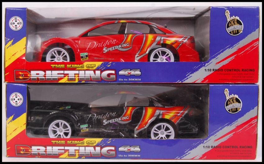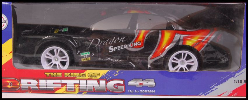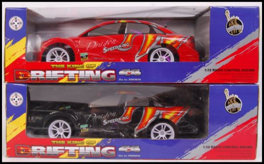 A collection of 2x original contemporary New York Gift Co. 'The King Drifting 4x4' 1:10 radio controlled racing cars. Both within their original boxes.