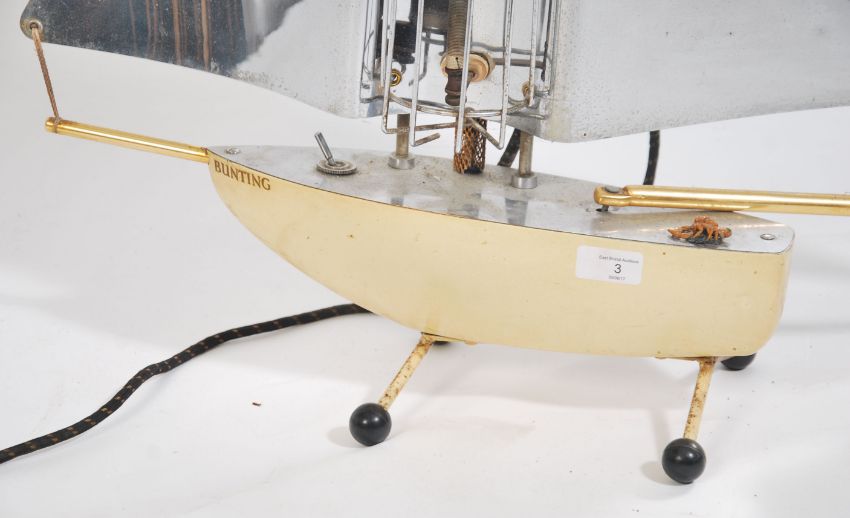 A 1930's Art Deco ' Bunting ' designer radiant heater in the form of a yacht. The two chrome tin sales acting as heat reflectors, the mast as heating rod. Believed English circa 1930's