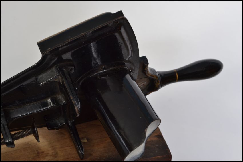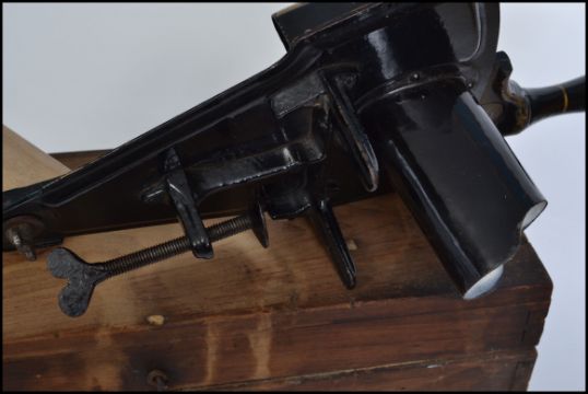 An exceptional cased Marmalade slicer with ebony and gilt notation / decoration. Complete in the original wooden box with wooden pusher