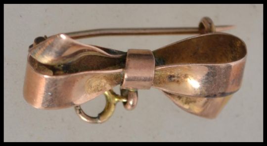 A 9ct gold hallmarked ladies brooch in the form of a bow. Pin verso with Chester hallmarks. Total weight 2.1g