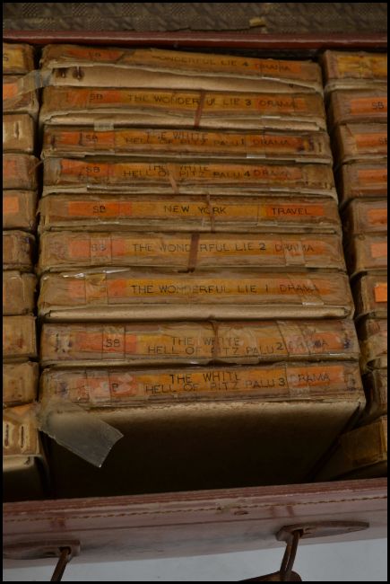 A large colllection of vintage reel to reel films to include many titles such as Gloria, The Prisoners song, Conquest Of The Railways, Cowboy Comedy, Atlantic Conference, The Wonderful Lie, The White Hell Of Pitz Palu, New York, In Search Of Adventure, News Reviews 1936 and 1949 all contained within a vintage suitcase. Suitcase measures 60cms wide.