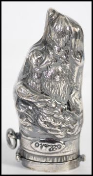 An unusual silver plated vesta case in the form of a hunting dog / dogs head with hinged cap end
