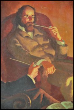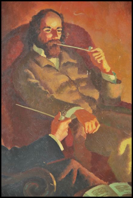 A framed oil on board of two two gentlemen seated by the fire smoking pipes signed Alan Durman  (British 1904-1963) to the corner. The painting belonging to a former cabinet maker at Wills Tobacco.  Measures 65cm high x 50cm wide.
