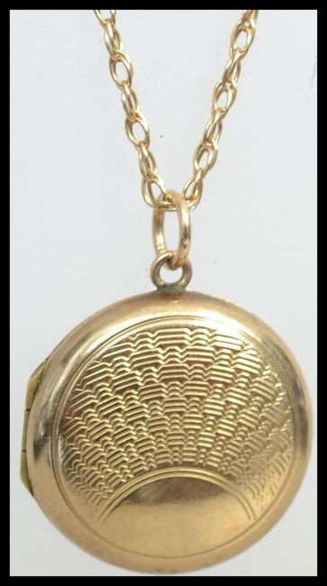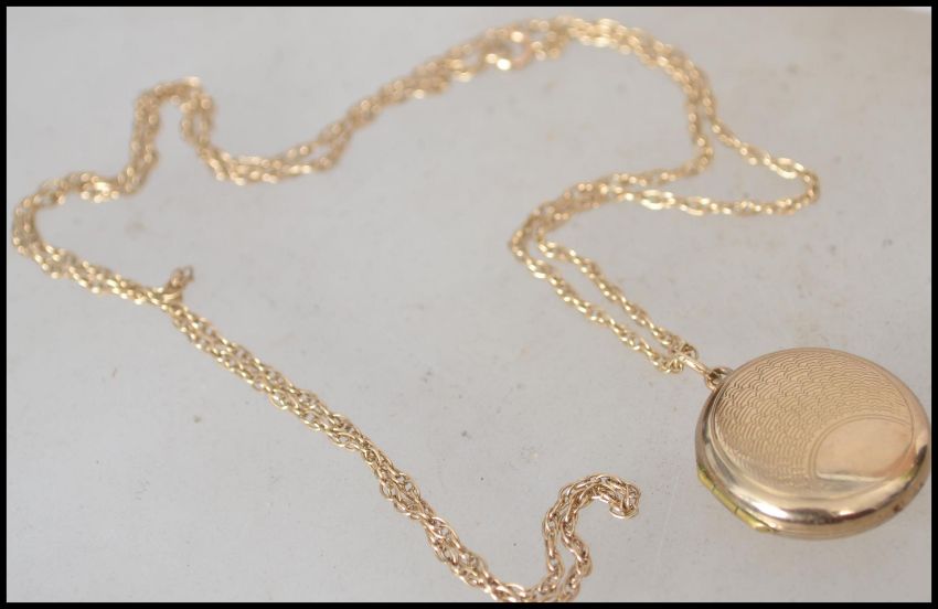 A 9ct gold necklace with 9ct gold front and back locket. The chain 60cms in length 2.9g / total weight inc locket 7.7g
