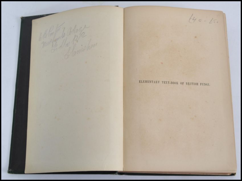 An Elementary Text Book of British Fungi; Delisle Hay, William. 1887 First Edition, Pub. London. First edition. Green cloth boards, with gilt decoration to cover.