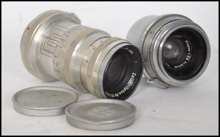 A vintage Zeiss-Opton Biogon T f/2.8 35mm Lens, chrome, serial no. 2203286 together with a Carl Zeiss Jena Triotar f/4.5 75mm lens