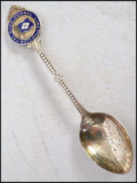 A mixed lot of mostly silver hallmarked items to include a manicure tool, a cut glass dressing table pot with hallmarked silver lid and a Blue Funnel Line silver teaspoon.