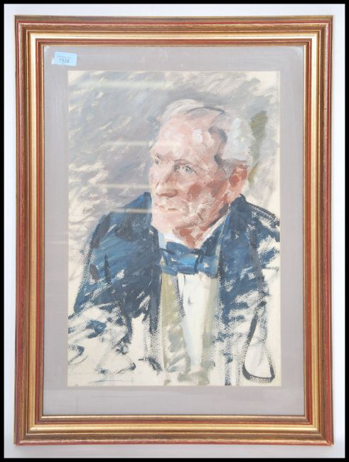 A oil / gouache on canvas portrait painting study of a believed politician being framed and glazed signed by artist to corner.